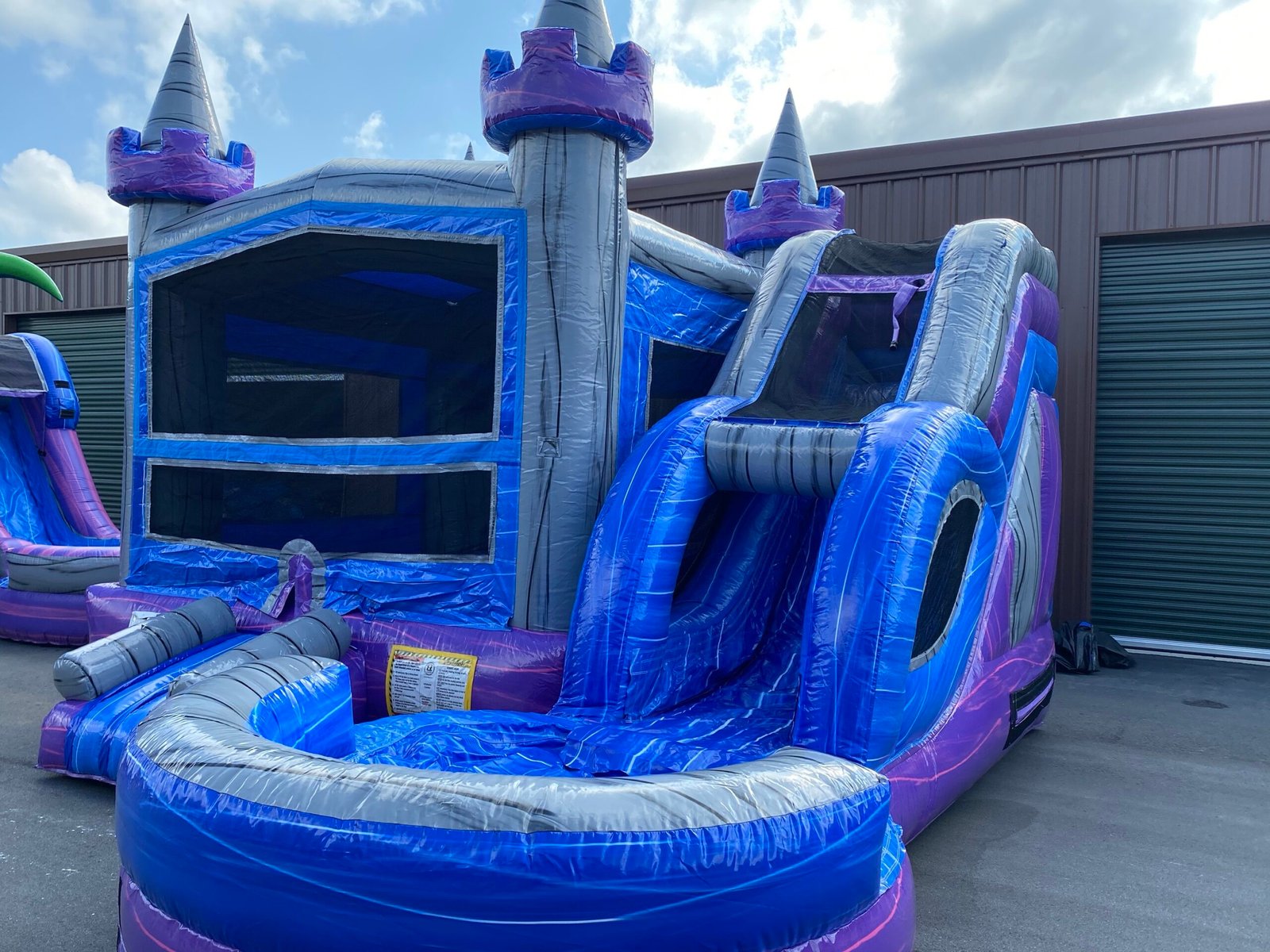 DescriptionThis 5 in 1 Crystal Castle Combo also features 10 ft tall Waterslide. The bouncing area is 13x13ft with attached basketball hoop and climbing wall. this unit is great for age 5 and up!