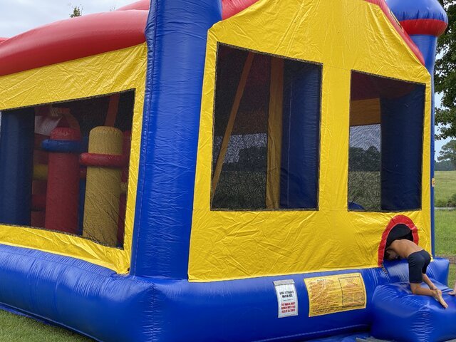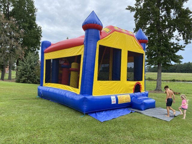 DescriptionCastle themed jump for parties, events, weddings, etc. Have a fun filled day with this exciting inflatable. Jump, shoot some hoops, get through the bop bags, ride the slide. Keep the children entertained for hours.