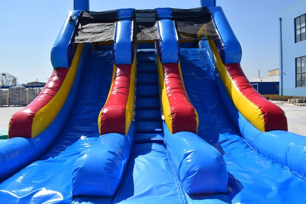 DescriptionLooking for an exciting addition to your next event or party? Look no further than our Multi Color Double Lane Dry Slide! This inflatable slide is perfect for kids and adults alike, offering two lanes for maximum fun and competition.